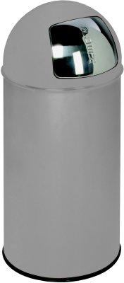 Dieser Push-Abfallsammler hat eine selbstschließende Edelstahl-Einwurfklappe.