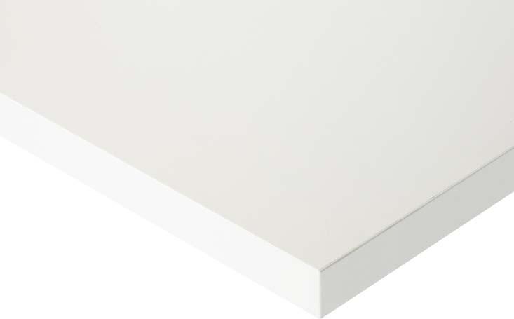 Lichtgraue Melaminharz-Direktbeschichtung nach DIN 68765. Normaler Abriebwiderstand, bedingte Kratz- und Stoßfestigkeit. Stärke 22 mm.