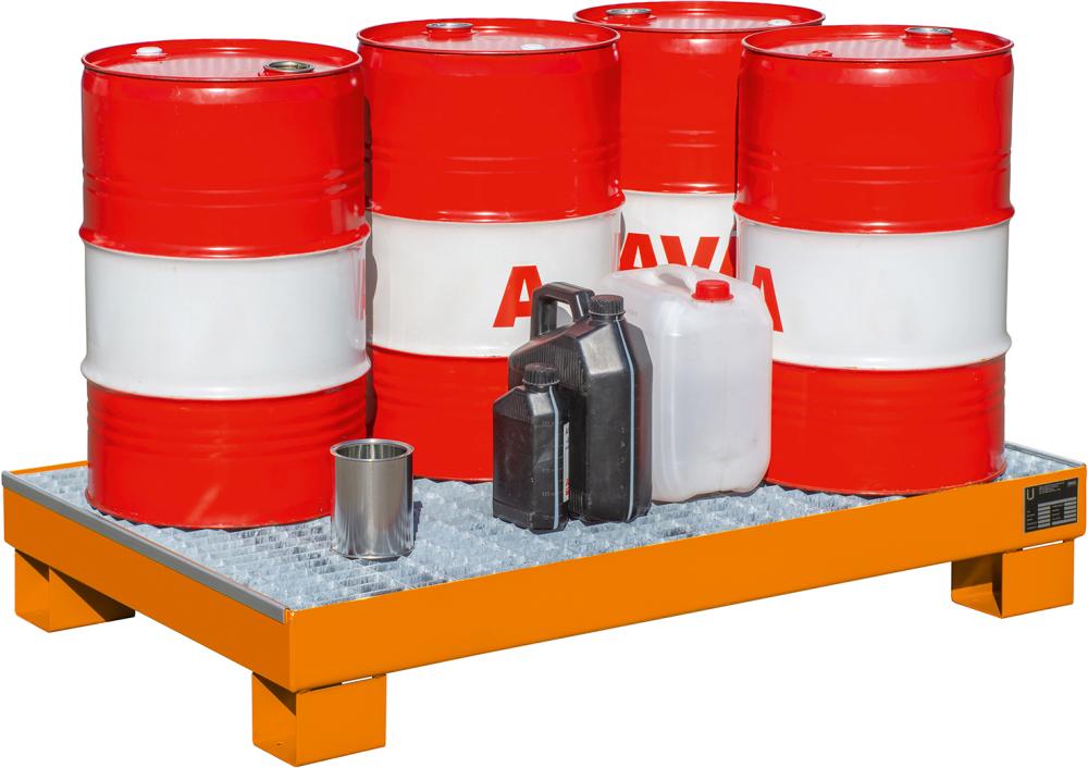 Diese Auffangwannen sind für die Lagerung von max. 6 Fässern à 60 Liter geeignet. Sie bestehen aus 3 mm verzinktem Stahlblech – wahlweise mit oder ohne Gitterrost.