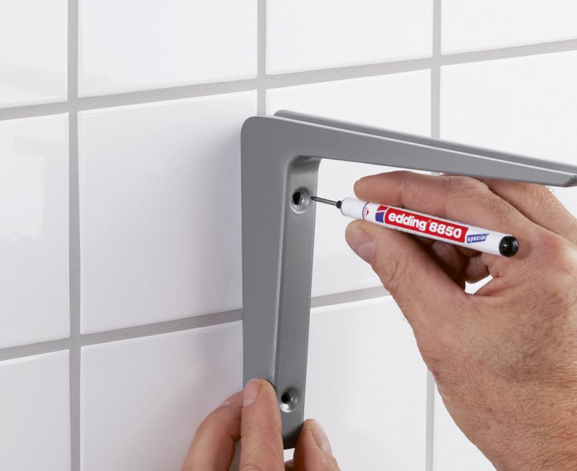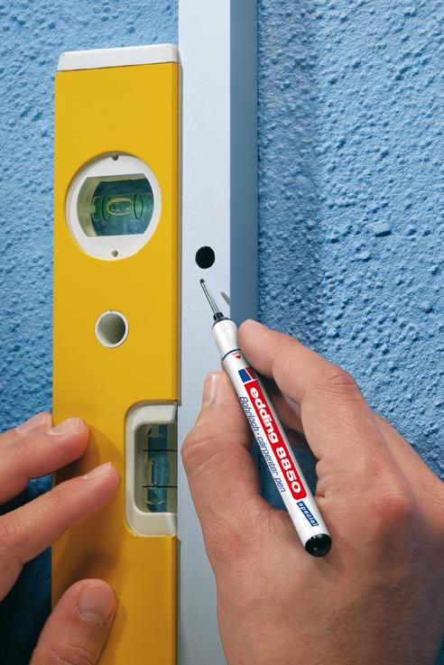 • Zum Markieren von Bohrlöchern und an anderen schwer zugänglichen Stellen auf fast allen Materialien, auch Glas und Kunststoff