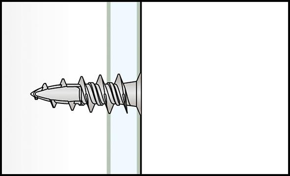 • Wenn die Schraube länger als der Dübel ist, schraubt sie sich einfach durch die Dübelspitze