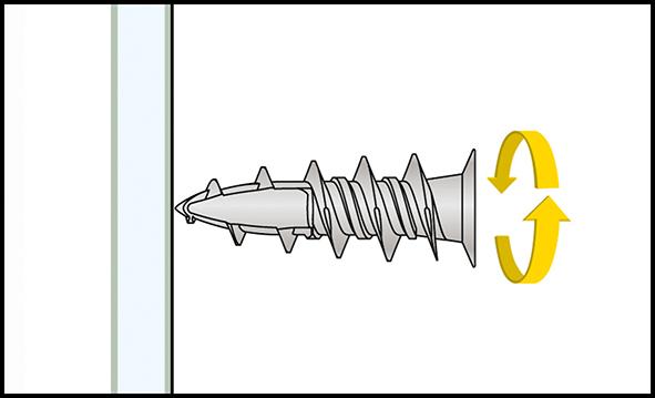 • Geeignet für die Befestigung in Gipskartonplatten und Gipsfaserplatten