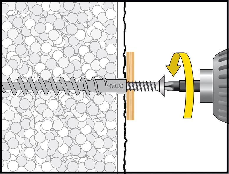 • Scharfe Bohrspitze für den Einsatz ohne vorbohren (Putz ≤ 7 mm)
