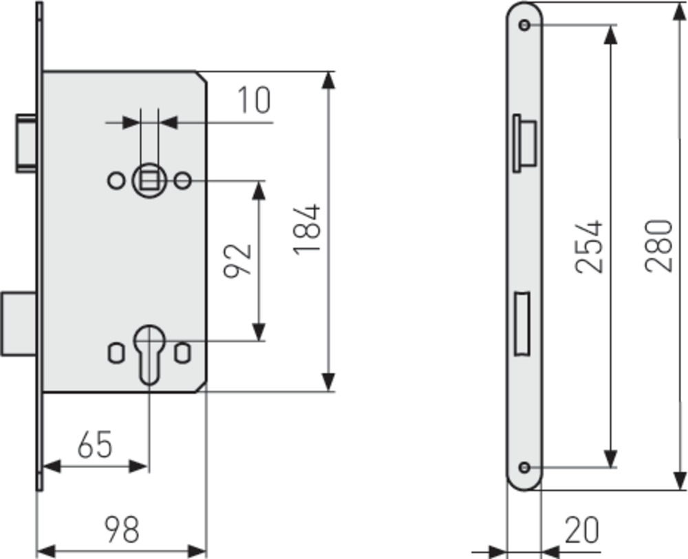 Einsteckschloss für Haustüren ESHT PZ L S 65 92 20 EK