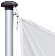 • Hisstechnik: leichte Hissbarkeit durch Umlenkrolle im Mastkopf, und robustes unteres Umlenkrollensystem, vertikale Fahnentuchführung durch Karabiner am Hiss-Seil