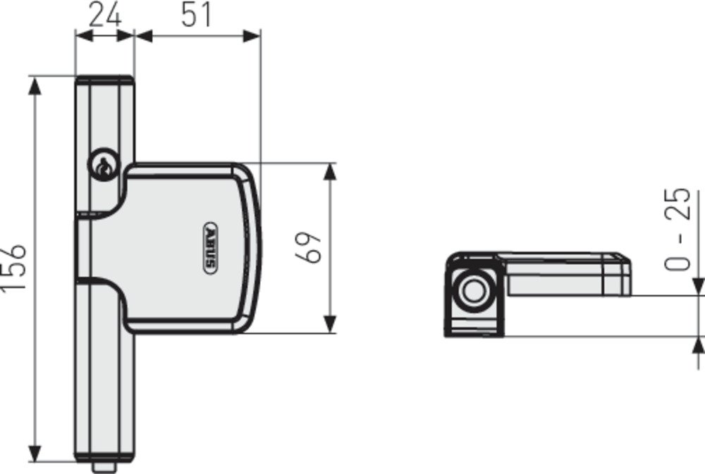 ZWEISTUFIGES SCHLIESSEN Fenster-Zusatzsicherung mit komfortabler zweistufiger Verriegelung. Ihre Fenster und Fenstertüren aus Aluminium, Holz oder Kunststoff lassen sich mit dieser Sicherung zuverlässig und gut erkennbar vor ungebetenen Gästen schützen. Die Sicherung schließt zweistufig. Stufe 1, der Anwesenheitsschutz, lässt sich durch leichtes Eindrücken des Riegelbolzens erzielen. Sie können die Zusatzsicherung dann ohne Schlüssel öffnen. Stufe 2 ist die Totalverriegelung. Durch vollständiges Eindrücken des Bolzens lässt sich die Sicherung nur noch mit einem der beiden mitgelieferten Schlüssel öffnen. In diesem Zustand hält sie einem Druck von über einer Tonne stand. Die Zusatzsicherung eignet sich für Fenster und Fenstertüren mit einer Falzstärke von bis zu 25 Millimeter.