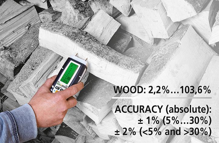 • Professionelles Feuchtemessgerät zur Messung von Holz- und Baufeuchte