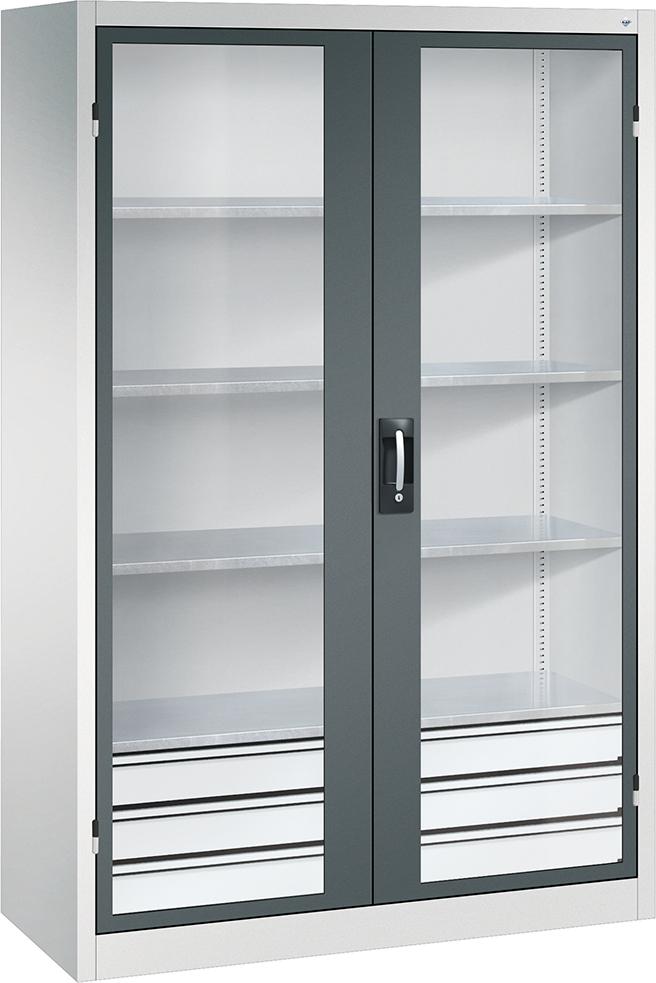 Schwerlastschrank, mit Flügeltüren und Schubladenblock unten, RAL 7035/7016