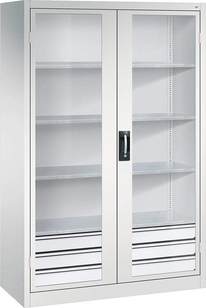 Schwerlastschrank, mit Flügeltüren und Schubladenblock unten, RAL 7035/7035