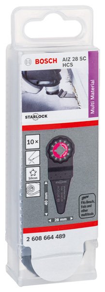 Der Universalfugenschneider AIZ 28 SC ermöglicht zuverlässig und einfach Schnitte in verschiedene weiche Materialien. Das scharfe Blatt ist ideal zum Durchschneiden von biegsamem Material geeignet. Die rasiermesserähnliche und durchgehende beidseitige Schneidekante und die geschliffene Spitze ermöglichen müheloses Durchstoßen und Durchneiden von biegsamem Material. Der biegesteife Klingenkörper aus HCS-Stahl (Stahl mit hohem Kohlenstoffgehalt) schneidet leicht weiches Material, da sich die breite Klinge nicht verbiegt oder mitten im Schnitt verwindet. Dieser Schneider ist ausgelegt für weiches Fugenmaterial, Spachtelmaterial wie Dichtmasse, Dämmmaterial und weiches Fugenmaterial. Das Starlock-Aufnahmesystem ermöglicht ‌einen schnellen Blattwechsel ohne Blattberührung in drei Sekunden.‌ Das Starlock-Aufnahmesystem ermöglicht durch seine dreidimensionale enge Passung maximale Kraftübertragung zwischen Maschine und Zubehör.