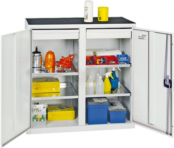 Werkzeug- und Materialschrank Serie 2000, 2 Schubladen, 4 Fachböden und Mitteltrennwand