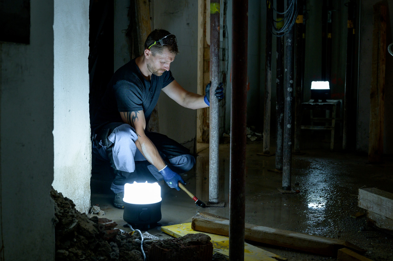 Der leuchtstarke Multi Battery LED 360° Hybrid Baustrahler von Brennenstuhl eignet sich ideal für den anspruchsvollen und robusten Einsatz im Innen- und Außenbereich. Durch die Schutzart IP54 ist die Arbeitsleuchte mit Rundumbeleuchtung bestens vor Staub und Spritzwasser geschützt. Dank dem Multi Battery 18V System ist es möglich, auf das Akku-System seiner Wahl zurückzugreifen - und das im High Performance Bereich. Der leistungsstarke Arbeitsstrahler sorgt für noch mehr Effizienz durch Kompatibilität zu elf 18V Akku-Systemen der Powertool-Hersteller Bosch Professional, Dewalt, Einhell, Fein, Festool, Flex, Hikoki, Makita, Metabo CAS, Milwaukee und Würth. Ganz egal also für welches Akku-System sich der Profi entschieden hat, das Brennenstuhl Multi Battery 18V System ermöglicht eine volle Kompatibilität mit den führenden Akku-Technologien. Brennenstuhl ist Teil von AMPShare - Powered by Bosch Professional. Die AMPShare Akku-Allianz ermöglicht die Verwendung der Brennenstuhl Arbeitsstrahler mit den 18V Akkus von Bosch Professional. Der 360 Grad Baustrahler mit innovativer Schnittstellen-Technologie überzeugt außerdem durch folgende Eigenschaften:Mit Ein/Aus Schalter, über welchen man zudem die 4 Schaltstufen (100% - 75% - 50% - 25% Licht) steuertHybrid-Technik: Netz und Akku Betrieb möglichMit fest installiertem 5m Kabel (H07RN-F2X1,0)Mit Akku-ZustandsanzeigePraktische Kabelaufwicklung möglich und Clip zur BefestigungRundum-Griffe für einfaches TransportierenInklusive Haken zum Aufhängen mit Schiebemechanismus, um das Ungleichgewicht durch den eingesetzten Akku ausgleichen zu könnenFlexible Nutzung: Stehend, hängend, auf Stativ montierbarLeuchtdauer in Abhängigkeit des verwendeten Akkus:ca. 12 min/1Ah bei 100% Lichtleistung, ca. 16 min/1Ah bei 75% Lichtleistung, ca. 24 min/1Ah bei 50% Lichtleistung, ca. 48 min/1Ah bei 25% Lichtleistung Leistungsaufnahme: 100WLichtstrom: 12000lmFarbtemperatur: 6500KArt der LED: SMDSchutzart: IP54Beim Einsatz von 18V Akkus höherer Ah-Klassen ohne Akku-Schutzhaube IP20Schutzklasse: IIISchlagfestigkeit: IK08