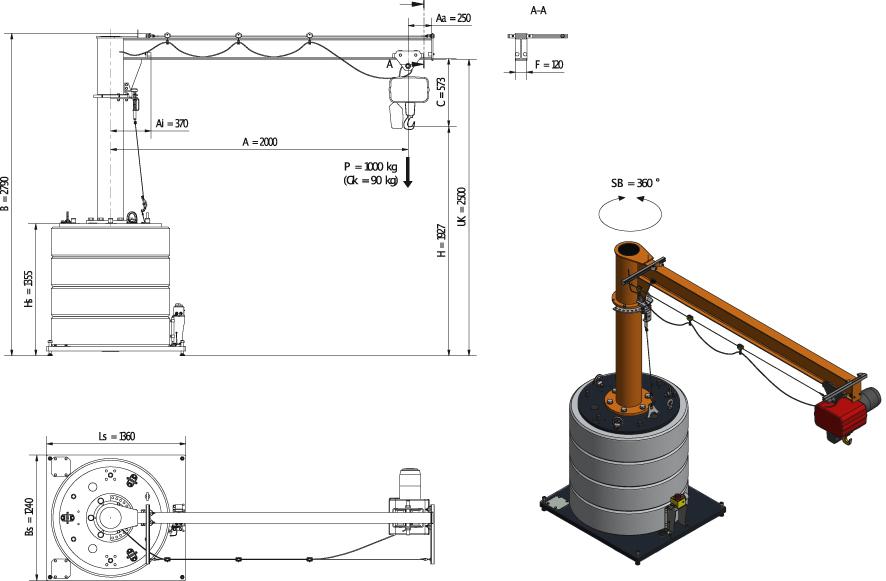 Mobiler Säulenschwenkkran1000kg,2,0m,360 MOBILUS+Elektrokettenzug MOB12-PR10-2,0