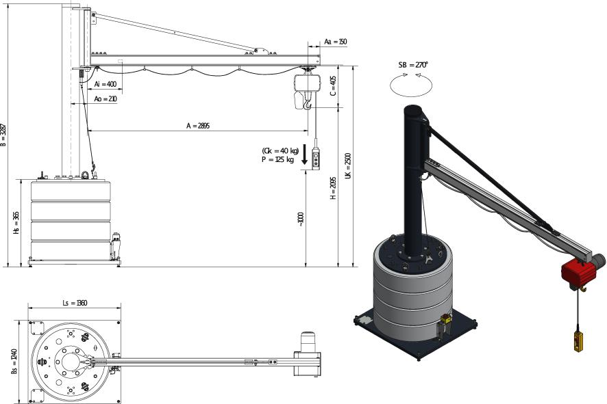 Produktinformationen "Mobiler Säulenschwenkkran125kg,2,9m,270 MOBILUS+Elektrokettenzug MOB12-US1,25-2,9"