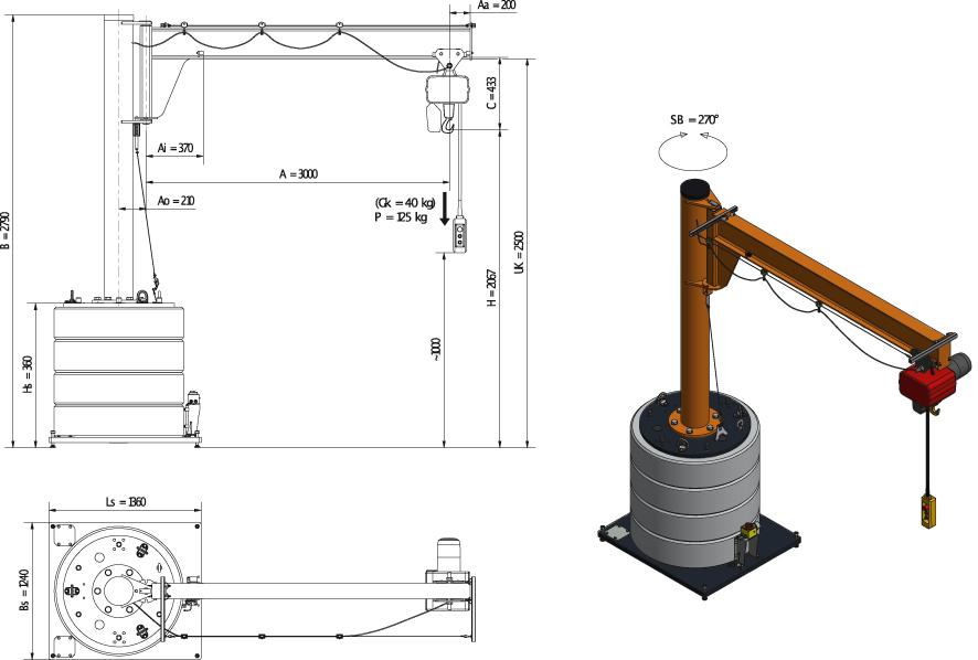 Mobiler Säulenschwenkkran125kg,3,0m,270 MOBILUS+Elektrokettenzug MOB12-AS1,25-3,0