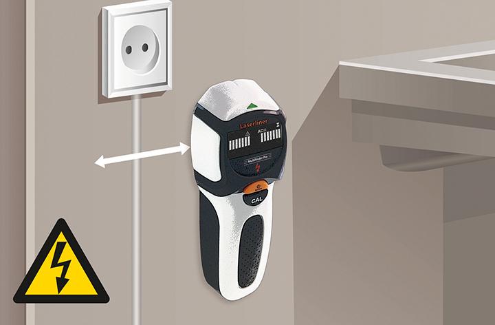 Gezielte Ortung von Stromleitungen, spannungsführend (AC-Scan) bis 4 cm Tiefe