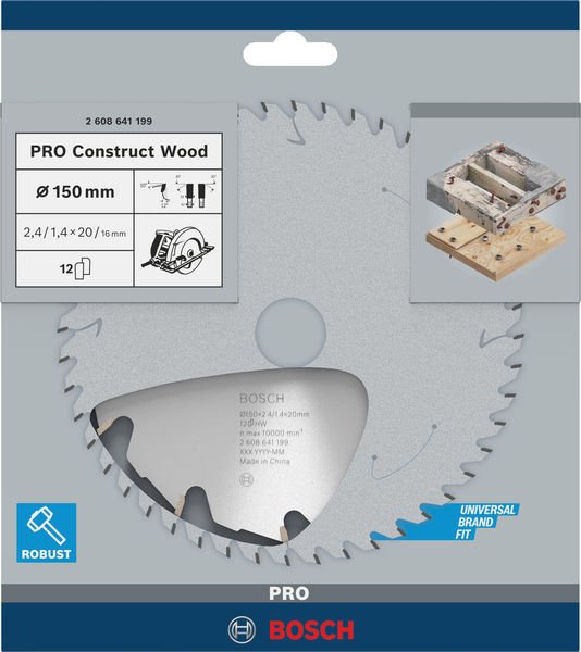 Robustes Schneiden von Bauholz! Geschliffene und geschärfte feine Carbide-Zähne für Festigkeit, Langlebigkeit und Präzision Du benötigst ein zuverlässiges Kreissägeblatt zum Schneiden von Bauholz? Ein Sägeblatt, das nicht stoppt, wenn es auf einen Nagel oder Betonreste trifft? Dann ist das PRO Construct Wood Kreissägeblatt die richtige Wahl. Es ist stark und präzise, sodass du es für schwierige Aufgaben und ange Zeit verwenden kannst. Das PRO Construct Wood Kreissägeblatt verdankt seine herausragende Festigkeit, Genauigkeit und Haltbarkeit einer Basis aus gehärtetem Stahl und hochwertigen Carbide-Zähnen. Die Zahngeometrie sorgt dafür, dass die Klinge robust genug ist, um Nägel und Betonreste zu durchtrennen. Das Blatt verfügt außerdem über Dehnungsschlitze, um einen Hitzestau zu verhindern.