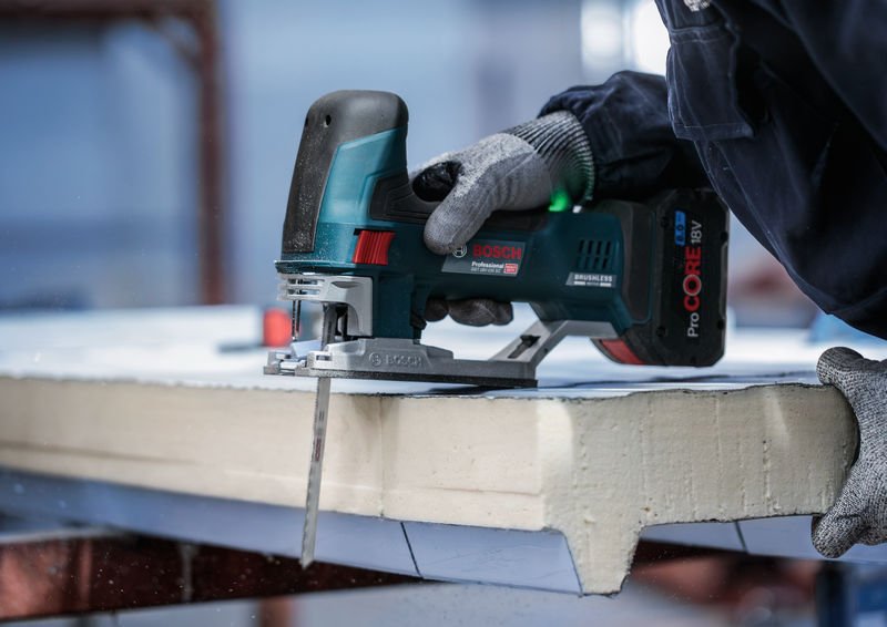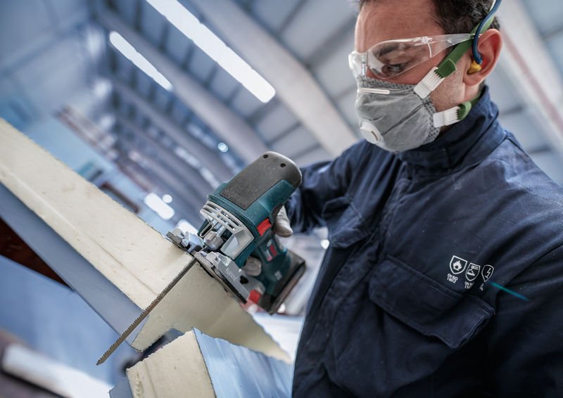 Herausragende Lebensdauer beim Schneiden von Metall-Sandwich! Bi-Metall Blatt: Kombiniert harte Zähne mit flexiblem Blattkörper Das Schneiden von Metall-Sandwich erfordert ein Stichsägeblatt, das nicht nur stark, sondern auch lang genug ist, um hartes, mehrschichtiges Material zu durchtrennen. Wie das langlebige PRO Metal Sandwich T718BF. Es hat eine Länge von 180 mm, damit du problemlos Metall-Sandwiches durchtrennen kannst – immer und immer wieder. Das PRO Metal Sandwich T718BF Stichsägeblatt ist eine gute Wahl für Bauarbeiter und Installateure, die ein langlebiges Stichsägeblatt zum Schneiden von Metall-Sandwich benötigen. Es verfügt über eine Zahnleiste aus Schnellarbeitsstahl (HSS) und einen elastischeren Körper aus Kohlenstoffstahl (HCS), um sicherzustellen, dass es beim Schneiden mehrschichtiger Platten nicht bricht. Die gefrästen, gewellten Zähne mit feiner Zahnteilung sind so konzipiert, dass du gerade Schnitte in Werkstücken mit einer Dicke von bis zu 120 mm erzielen kannst.