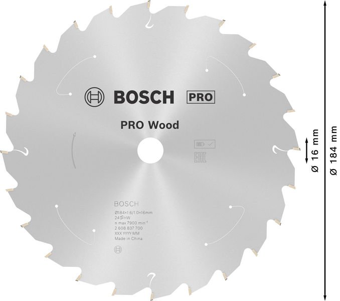 PRO Wood cordless Kreissägeblatt, 184 x 1,6 x 16 mm, T24