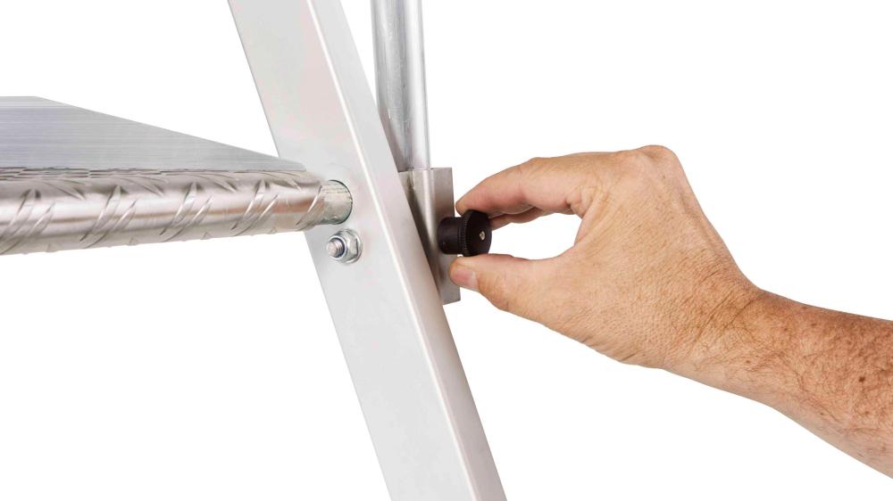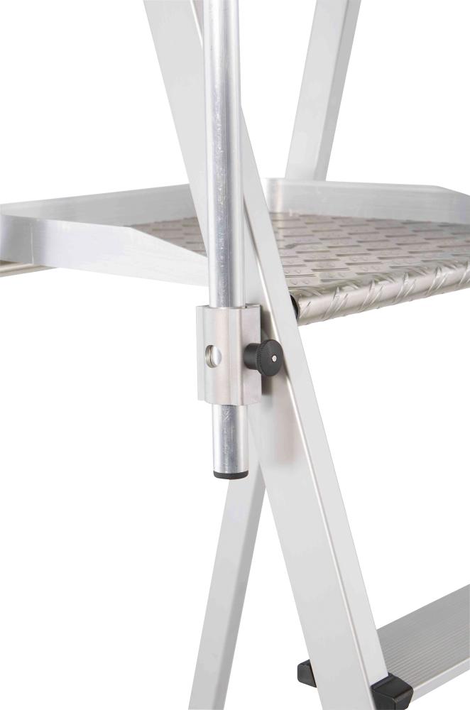 • Arbeitsplattform: geriffelt, 400 x 400 mm, mit dreiseitigem Sicherheitsgeländer (Höhe 1000 mm)