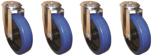 Der Rollensatz besteht aus 4 Rädern à Ø 100 mm, 2 mit Feststeller, inkl. Befestigungsmaterial zur Montage an den Füßen.