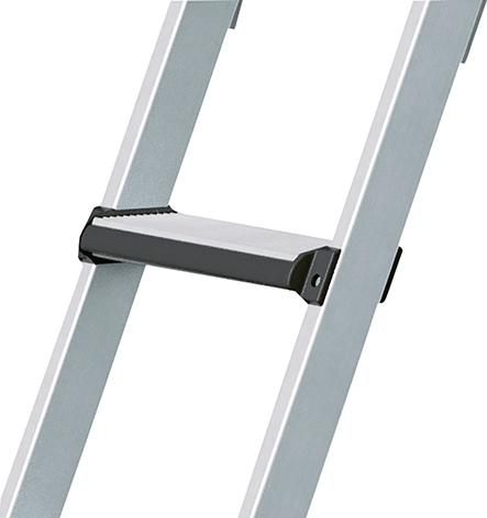 Regaleinhängeleiter mit geschraubten Stufen und gepolsterter Stufen-Vorderkante