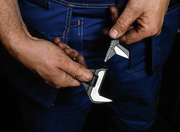• Durch Entfernen und Drehen der beweglichen Backe kann der Rollgabelschlüssel in eine Rohrzange umgewandelt werden