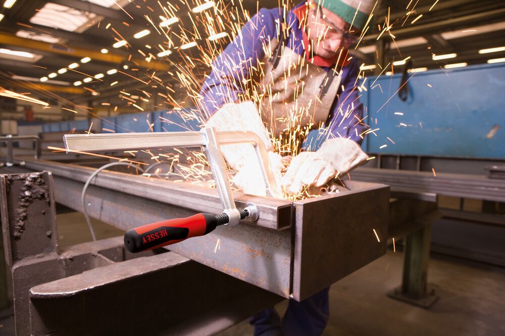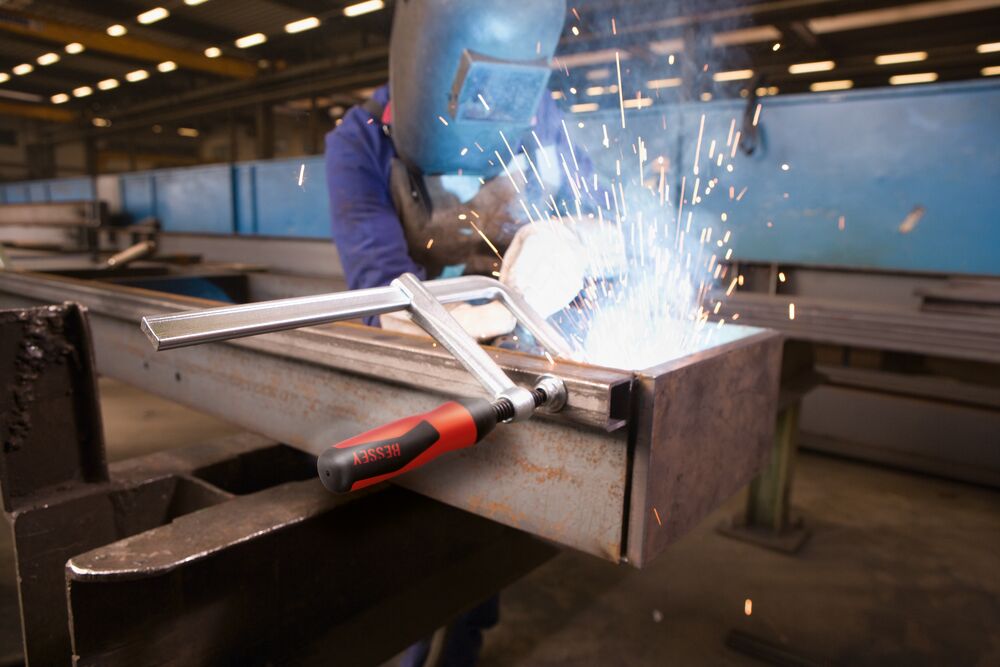 Überprüfen Sie regelmäßig die Funktion der Endsicherung bei Zwingen. Pflegehinweise: Regelmäßige Wartung notwendig – nur dann Gewähr auf sicheren Halt (kein Rutschen des Gleitbügels).
