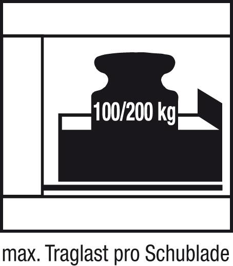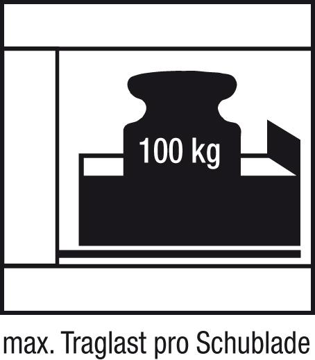 • Schubladen: Tragkraftt T 630 mm 100 kg, Vollauszug, Farbe RAL 7035 lichtgrau