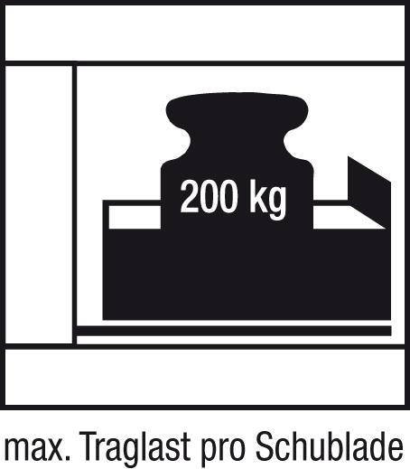 • Schubladen: Tragkraftt T 690 mm 200 kg, Vollauszug, Farbe RAL 7035 lichtgrau