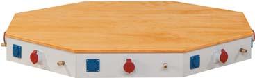 Diese Energieaufsatz passt auf die 8-Eck-Werkbänke. • 8x Schutzkontakt-Steckdose, 8x CEE-Steckdose, 8x Druckluftkupplung, unverdrahtet