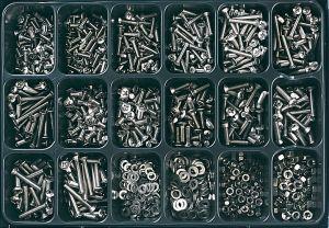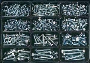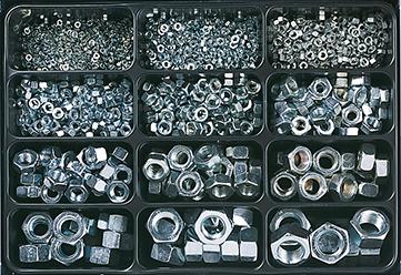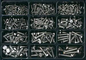 Ausführungen: H1: gerade H2: 45°-Winkel H3: 90°-Winkel • Oberfläche: verzinkt • Inhalt: ca. 225 Teile H1: M 6; M 8; M 10; M 6x1; M 8x1; M 10x1 H2: M 6x1; M 8x1; M 10x1 H3: M 6x1; M 8x1; M 10x1