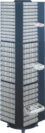 Der leere Drehturm bietet Platz für 12 Schubladenmagazine des Typs 150. • Leichtgängige Bedienung durch wartungsfreie Rollenlager • Magazine bitte separat bestellen! Lieferung: erfolgt unmontiert.