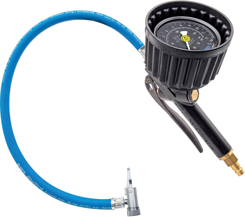 Klassischer Handreifenfüllmesser mit Hebelstecker , typisches Profigerät für Tankstelle und Werkstatt. Auch für Reifengas (Stickstoff) geeignet. Produkteigenschaften: • Stoß- und schlagfest • Einfaches Befüllen und Entleeren • Präzise Dosierung • Konformitätsbewertet nach Modul D • Drehbarer Füllschlauch • Mit Hebelstecker für alle Reifenventile mit Ventilgewinde VG 8 Lieferumfang: Reifenfüllmesser mit Hebelstecker Hinweis: Die Konformitätsbewertung findet im Werk statt. Nach Ablauf der Gültigkeitsdauer von 2 Jahren ist eine Nacheichung erforderlich. Das entsprechende Datum ist durch eine Plakette auf dem Gerät ersichtlich.