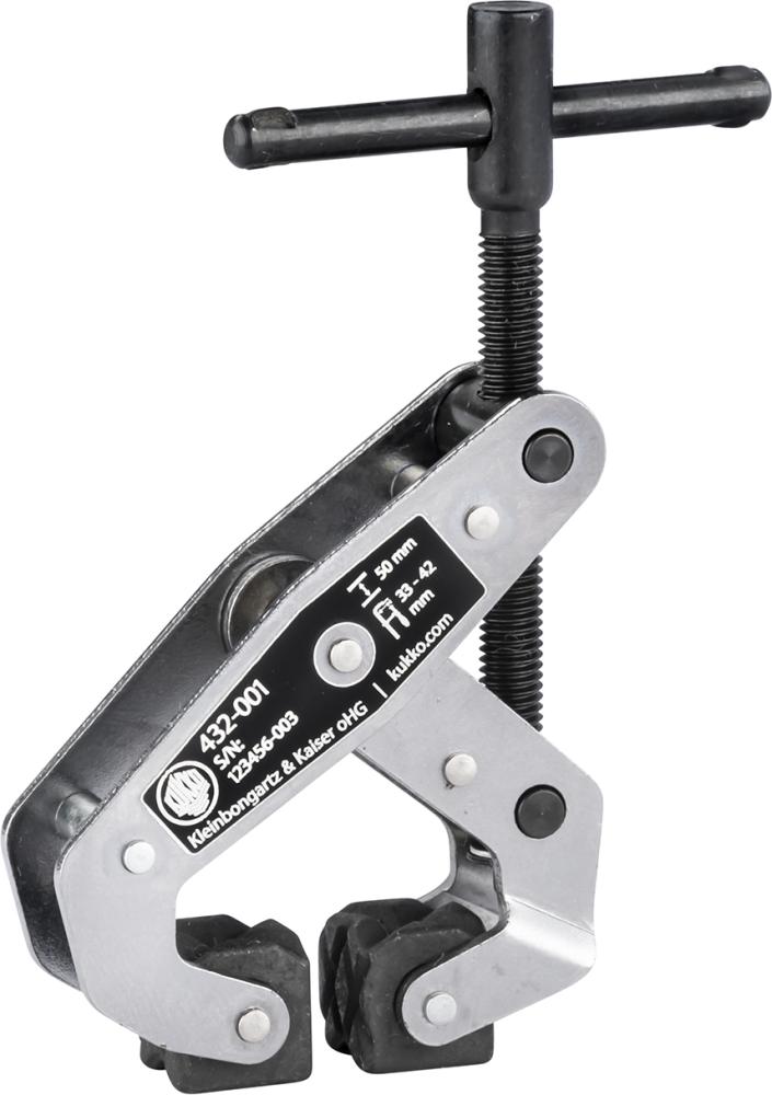 • Schenkel aus Qualitätsstahl • Trapezgewindespindel brüniert • Bewegliche Backen mit Prismeneinschnitt • Zum Innen- und Außenspannen unterschiedlicher Profile