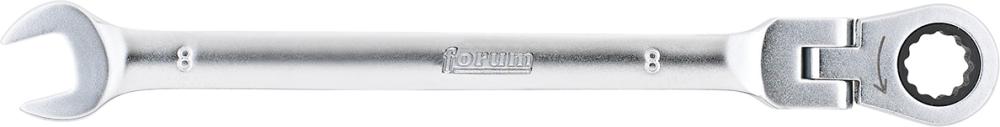 • Matt verchromt • Chrom-Vanadium-Stahl • Geschmiedet • Griffig geprägter Profilschaft • Maulstellung und Ratschenkopf 15° abgewinkelt • Umschaltbar • 72-fach verzahnt