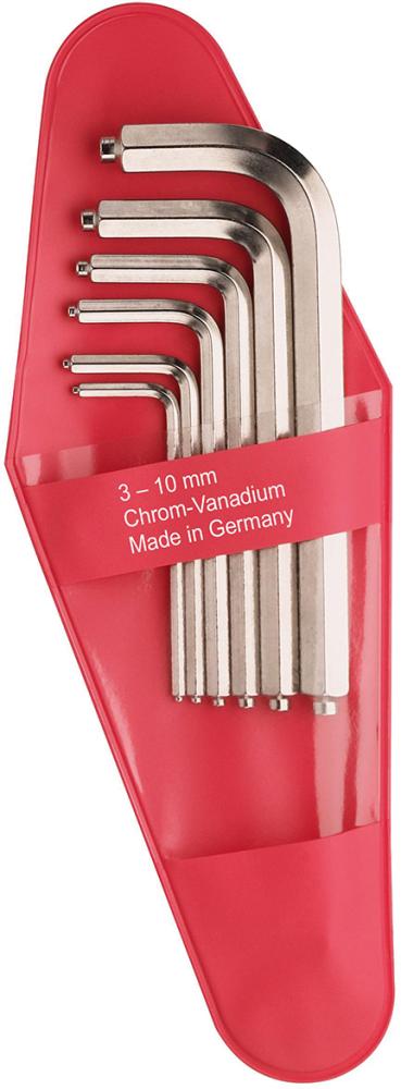 • Vernickelt • Chrom-Vanadium-Stahl • Mit Zapfen • DIN 6911 Lieferung: In Kunststofftasche. Inhalt: 6 Winkelschraubendreher für 6-kant-Schrauben 3; 4; 5; 6; 8; 10 mm.