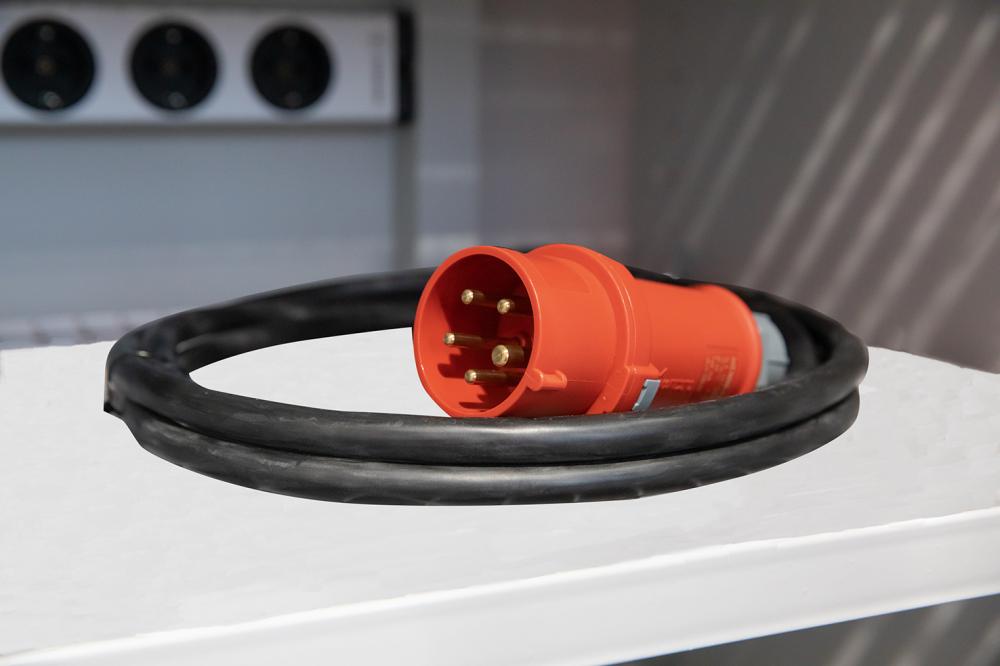 Passendes Stromkabel für 3-phasigen (400 V) Netzanschluss.