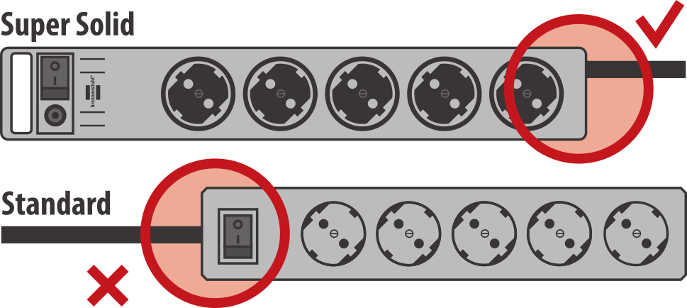 Die Super-Solid 8er Mehrfach-Steckdosenleiste von Brennenstuhl in der Farbe silber und 2,5m Kabel besticht durch ihre Qualität und Sicherheit in allen Bereichen. Durch einen besonderen Kabeleingang gegenüber dem Schalter ist die Bedienung dieser Steckerleiste besonders erleichtert z.B. unter dem Schreibtisch. Sie verfügt nicht nur über einen erhöhten Berührungsschutz, sondern überzeugt außerdem durch folgende Eigenschaften: