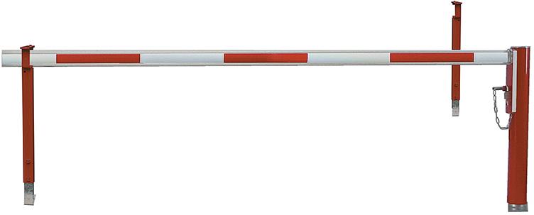 Die drehbare Wegesperre ist zum Einbetonieren oder mit Bodenplatte zum Aufdübeln. Bis lichte Sperrweite 4 m ist sie ohne Diagonalverstärkung, darüber mit Verstärkung. Die Schließung erfolgt an der Hauptstütze mittels Vorhängeschloss (bauseits), Auflage- und Ablagestütze sind vorgerüstet für die Verwendung eines Vorhängeschlosses.